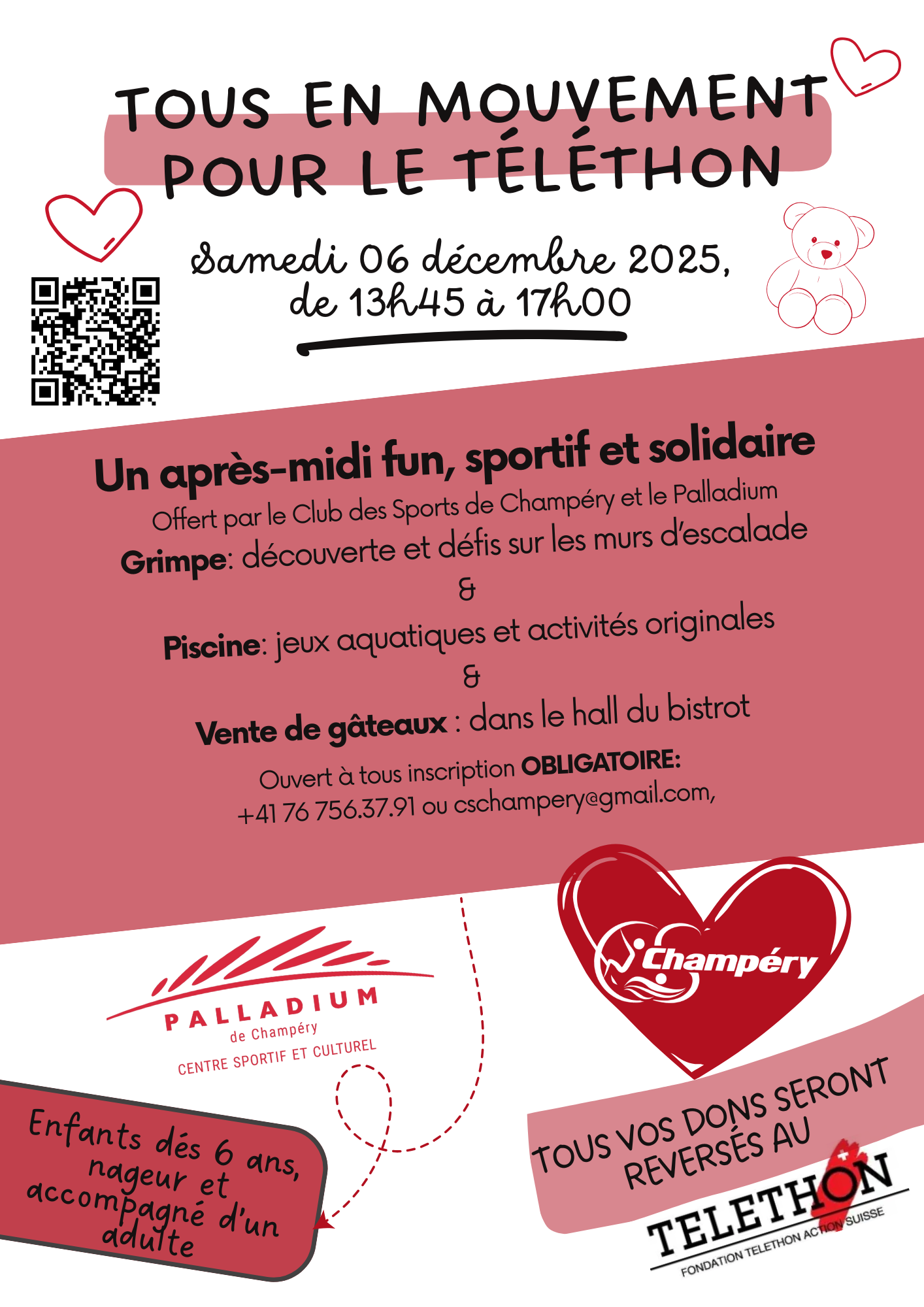 Le samedi 06 décembre au Palladium de Champéry, préparez-vous à bouger pour une cause solidaire lors d’un après-midi fun et sportif proposé par le Club des Sports de Champéry et le Palladium.